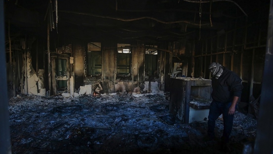 Este 31 de diciembre, numerosos manifestantes prendieron fuego a la valla que protege la embajada estadounidense e ingresaron en su territorio, incendiando el puesto de control de la misión diplomática y arrojando rocas.