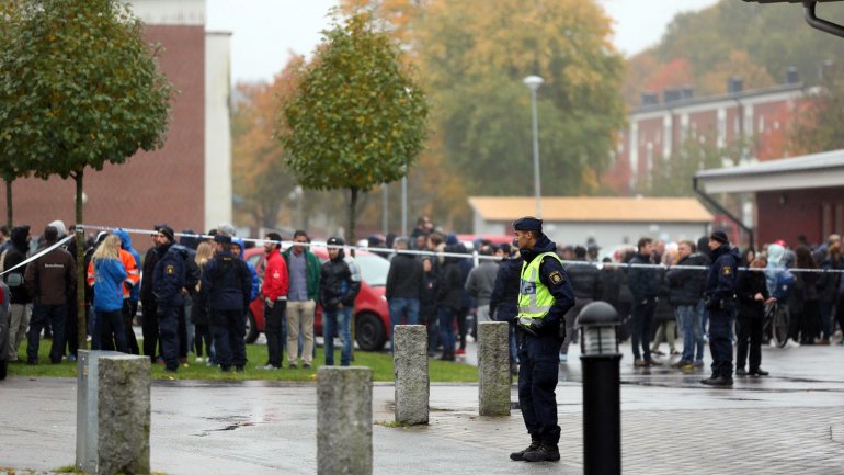 La testigo que la tomó, cuya identidad no fue revelada por las autoridades de Suecia, dijo al diarioAftonbladet que los alumnos creyeron que se trataba de una broma de Halloween cuando vieron al joven enmascarado.