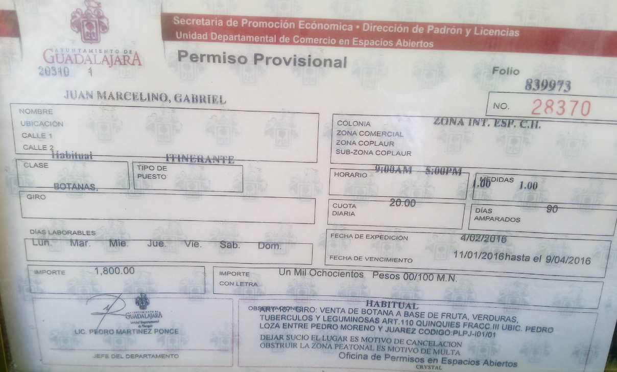 Eugenio Marín tiene prohibido vender globos artesanales como itinerante en el Centro Histórico de Guadalajara, en donde el presidente municipal Enrique Alfaro Ramírez autoriza PERMISOS para vender botanas a otros, entonces a ojos de Enrique Alfaro, Eugenio Marín es un mexicano de quinta.