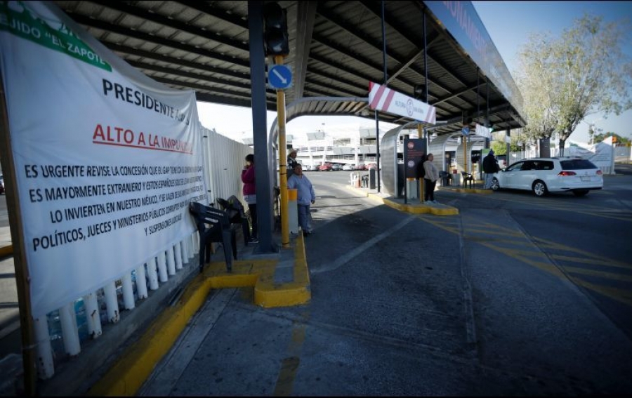 Desde hace más de tres meses, los ejidatarios tomaron el estacionamiento del aeropuerto en demanda del pago de los terrenos del ejido, más de 300 hectáreas donde se construyó la terminal, que ellos argumentan que no se les ha finiquitado.