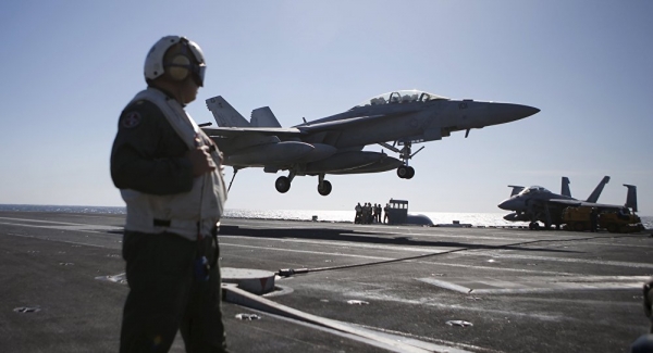 El F/A-18 se disponía a aterrizar sobre el portaviones USS Nimitz cuando se vio obligado a realizar varias maniobras evasivas para disminuir el riesgo de impacto.