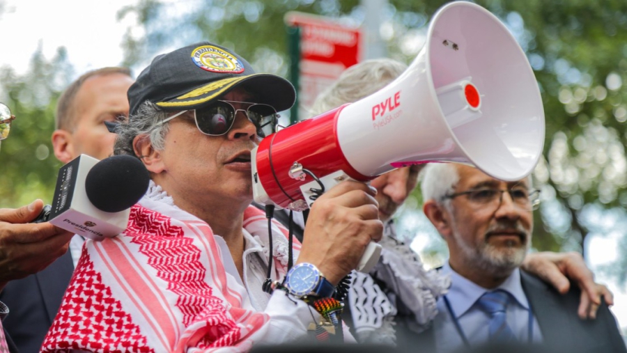Durante la manifestación, el mandatario colombiano denunció el genocidio israelí en Gaza, acusó al presidente estadounidense Donald Trump de complicidad y llamó a los militares de EE.UU. a “no apuntar contra la humanidad”.