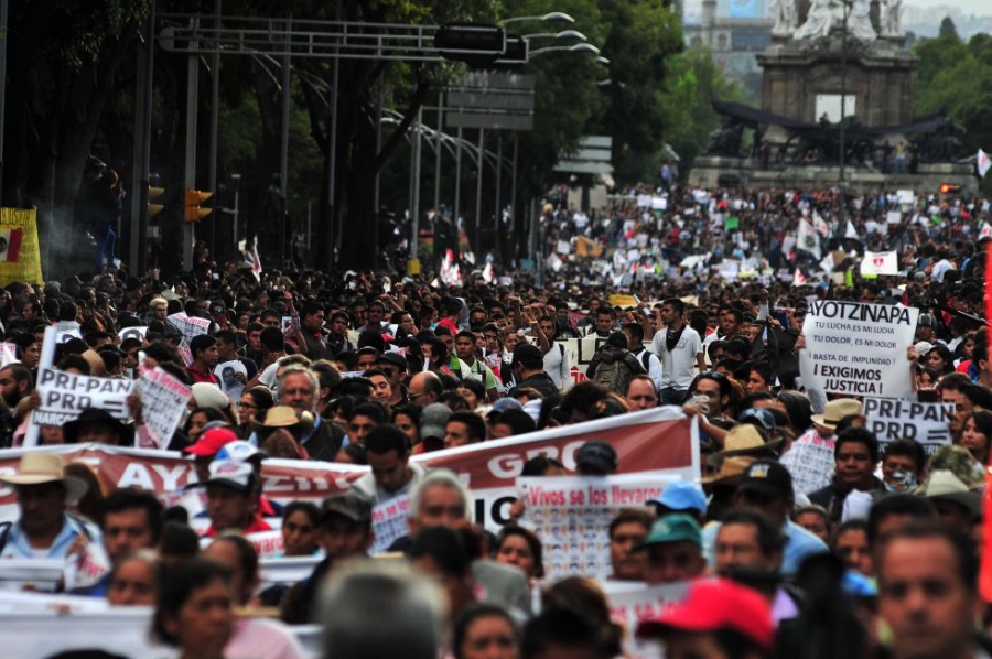 "Estamos cayendo en la desesperación... Se vuele a repetir la historia del 68 [la matanza de Tlatelolco]", dijo Juan Estrada, que esta tarde caminó junto a las familias de los desaparecidos por el Paseo de la Reforma, una de las principales vías de México DF, hasta el Zócalo, la plaza central de la capital. "Esta marcha no es de fiesta, Ayotzinapa está de luto", afirmó un estudiante de la escuela de los desaparecidos. Los manifestantes reclamaron que se dé con su paradero y que se arreste a los máximos responsables de lo ocurrido. A la protesta, además de los alumnos de la escuela de las víctimas, acudieron un gran número de estudiantes llegados de 39 centros educativos de todo México.